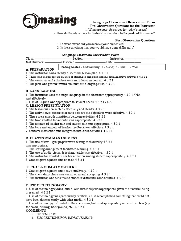 Grades before beginning to rate the classroom. This template is great for formal observations and for student teachers who need to complete lesson plans for their program. In this post, i will recommend ten things to remember for any formal. See more ideas about teacher observation, teaching, reading classroom. A good lesson plan can be a great way for teachers to organize activities, highlight areas of focus, experiment with different ideas, and set goals for student.